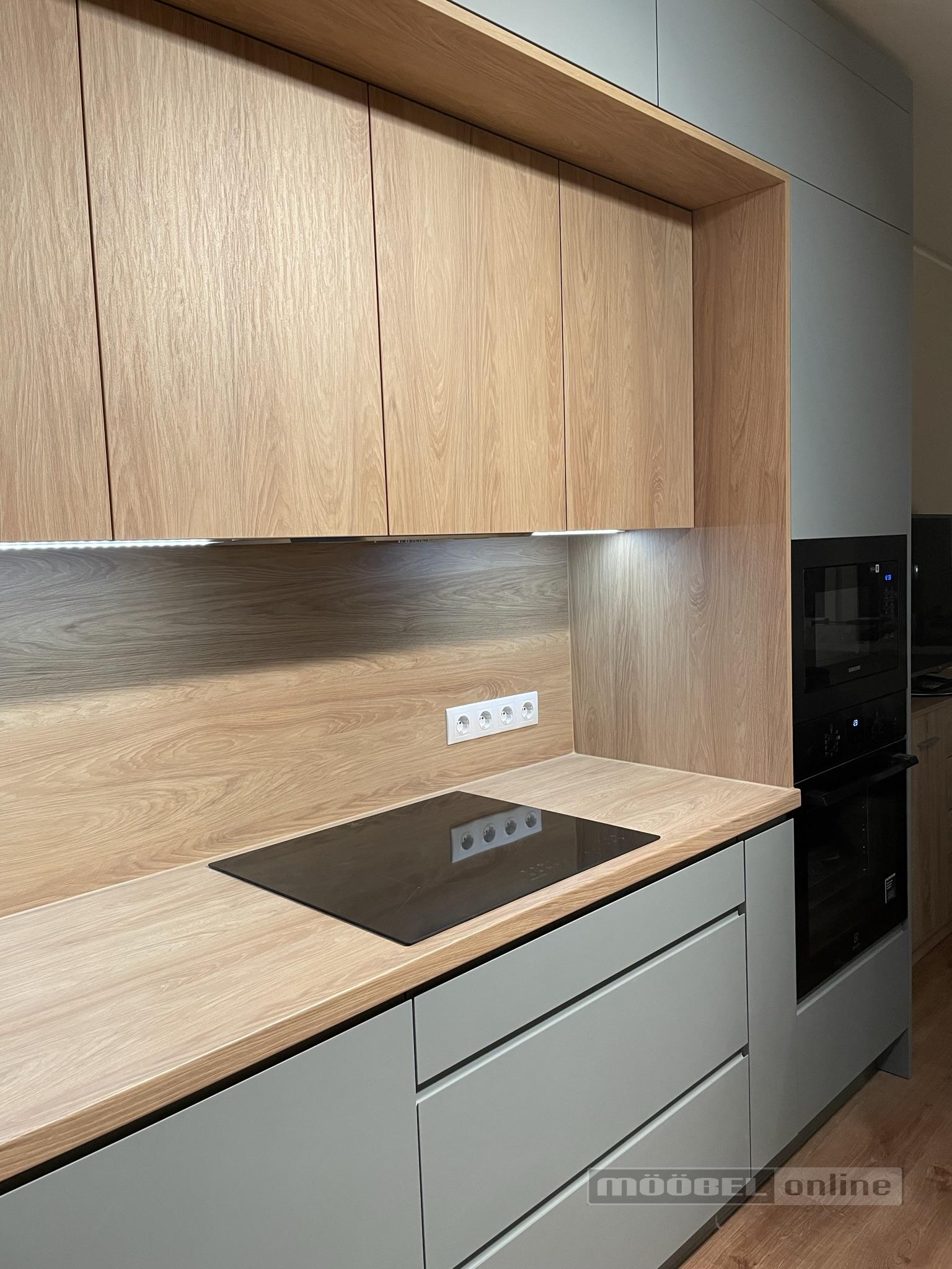 Кarkas : hall niiskuskindel LDSP 16мм Tööpind : Egger 38мм Seinapaneel : Egger 9мм Ül. Uksed : MDF , värv , мат+Egger lam Al. Uksed : MDF , värv , мат